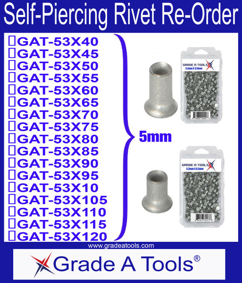 The Aluminum Self Piercing Rivets - SPR, 3.3mm x 6.5mm, 100/Box – premium quality self-piercing rivets designed for precision aluminum & steel bonding in collision applications. These 3.3mm diameter x 6.5mm grip length rivets provide strong, reliable joints for thin aluminum structures on Ford, BMW, GM, Audi, Jaguar, Land Rover, Mercedes Benz, and domestic/foreign vehicles.