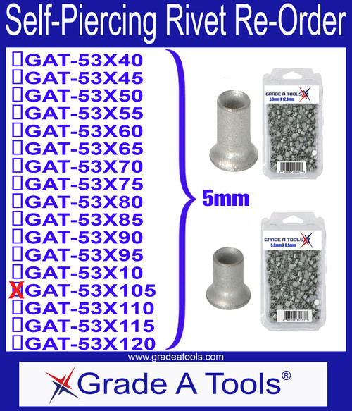 - GAT-53X105 aluminum self piercing rivets – 100 per box