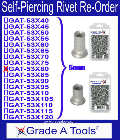- GAT-53X80 aluminum self piercing rivets – 100 per box