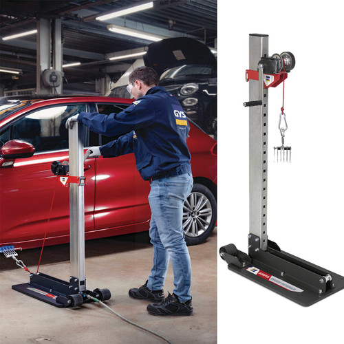 The GYS 077379 AIRFIX DRAW ALIGNER is the patented, must-have pulling tower for professional auto body dent removal, featuring a quick-change embedded seal that swaps in seconds with no glue, four shear-absorbing pads to protect joints, and a slide system for instant height adjustment—delivering fast, precise pulls on panels, doors, and frames every time.