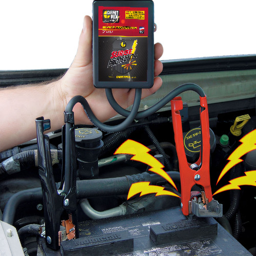 The DentFix DF-601A Surge Protector is the essential battery guard for collision shops, acting like a sponge to absorb voltage surges from MIG/spot welding, jump starts, plasma cutting, and other repairs—safeguarding ABS, engine management, fuel injection, radios, alarms, and sensitive electronics without disconnecting the battery. Works on 12V and 24V systems (one per battery if multiple), with a red LED confirming it's active; if overloaded, the light goes out. Lifetime warranty and USA-made reliability make it a must-have for high-volume bays avoiding costly ECU damage.