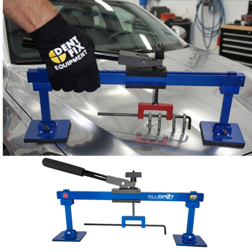 The DentFix DF-900BP Bridge Puller for Alu-Spot is the essential upgrade accessory for AluSpot aluminum repair stations, featuring fully adjustable leg positions and pulling mechanisms to deliver controlled, optimal pulls on aluminum panels, doors, and frames in professional auto body shops. Made in the USA with durable construction, this tool simplifies dent extraction and crease straightening by allowing technicians to customize setups for hard-to-reach areas, ensuring clean, distortion-free repairs that meet OEM standards while boosting efficiency in collision environments.