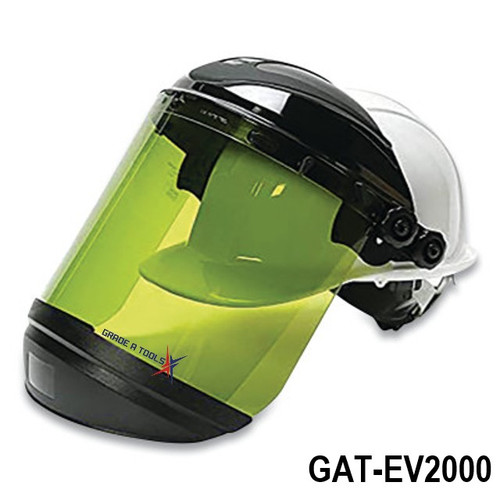 EV-Protect Arc Flash Face Shield with Hard Hat – Category 2 – the all-in-one arc-rated head and face protection every EV-certified collision tech needs when working around live high-voltage systems. Combining a rugged hard hat with a green-tinted, impact- and arc-resistant polycarbonate shield, this single unit delivers full-face CAT 2 protection while meeting ANSI Z87.1 and ASTM F2178 standards.