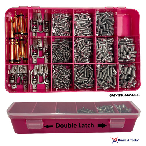 This Aluminum Dent Puller Weld Stud Master Kit GAT-TPR-M4568-G is a complete 1,028-piece professional set designed for fast, reliable dent removal on aluminum vehicle panels. The kit includes a wide variety of M4, M5, M6, and M8 aluminum weld studs (both AlSi12 silicon and AlMg3 magnesium alloys), point and round tip options, eye loop pull ring tabs, and dedicated chucks/electrodes. Compatible with GYS, Prospot, Chief, Dentfix, and most aluminum stud welding systems, it supports precise, low-heat repairs that preserve panel integrity in modern aluminum-bodied vehicles. Comes organized in a durable hard plastic storage case with double latch for shop-ready convenience.
