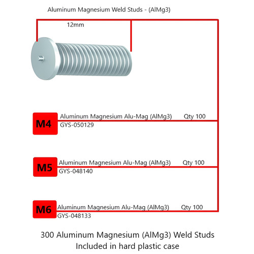 - (100) M4 Aluminum magnesium weld Studs - AlMg3 GYS-059573 (Round Tip)