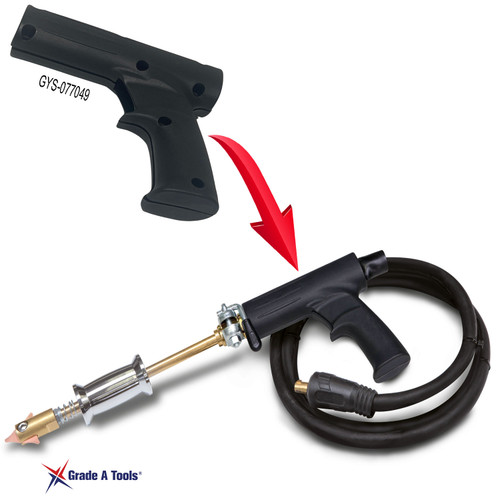 The GYSPOT Dent Puller Handle 077049 is a direct OEM replacement handle designed for GYS GYSPOT dent puller systems. This ergonomic handle fits both automatic quick guns and manual guns, providing comfortable control during stud welding and dent pulling operations. Ideal for collision and auto body shops needing to replace a worn or damaged handle on their GYS dent puller without replacing the entire gun assembly.