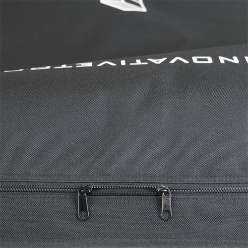 The Innovative INO-SSPC-TB Trim Bag is a heavy-duty padded storage bag constructed from 400D nylon exterior with soft padded nylon interior, designed to protect delicate and expensive trim panels from dust and damage in collision shops. Measuring 49" W x 38" H, it features 8 industrial grommets for hanging from Innovative Parts Carts or storing on vehicles to prevent interior damage, plus a heavy-duty two-way zipper for convenient access.