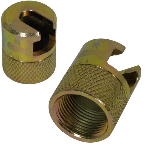 The Morgan BS-14 Locking Pliers Puller is an adapter that fits over the adjusting screw knob on 7" to 10" locking pliers (pliers not included), threading onto 3/4" NPT slide hammer shafts for strong impact pulling in collision repair.