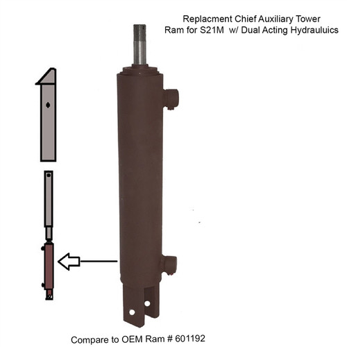 The Replacement Chief Frame Machine S21M Rear Auxiliary Tower Ram – aftermarket dual-acting hydraulic ram designed to replace Chief p/n 601192 for S21M and Titan frame machines. Engineered as a low-pressure ram made in the USA, this rear auxiliary tower ram provides direct bolt-on installation with no modifications required.