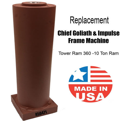 he Replacement Chief Goliath, Titan, and Impulse eVHT Tower Ram is a heavy-duty, single-acting hydraulic cylinder engineered as a direct, no-modification replacement for Chief p/n 450471. Proudly made in the USA, this ram features a 74.8mm bore and 257mm stroke to deliver full 10-ton pulling power on Chief 360-degree Goliath, Titan, and Impulse eVHT frame machines. Drop-in installation restores maximum performance with zero downtime – perfect bolt-on fit for daily collision repair use. Grade A tools part# RP-TR-GL-EVHT