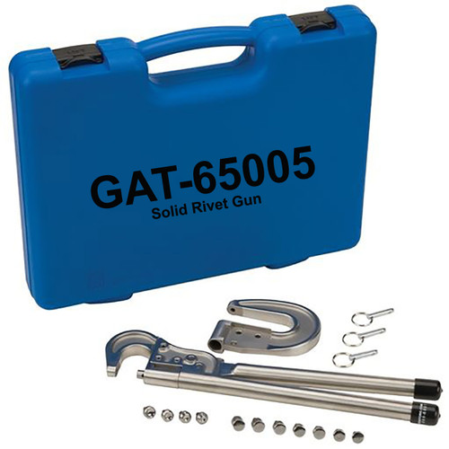 The Texas Hand Squeeze Rivet Set (GAT-65005) – professional-grade stainless steel squeeze tool designed for solid rivet installation when doing auto body and aluminum repair for EV cars and vehicles. Engineered for precision work on Ford, GM, and other manufacturer electric vehicles, this comprehensive set provides everything needed for professional solid rivet repairs.
