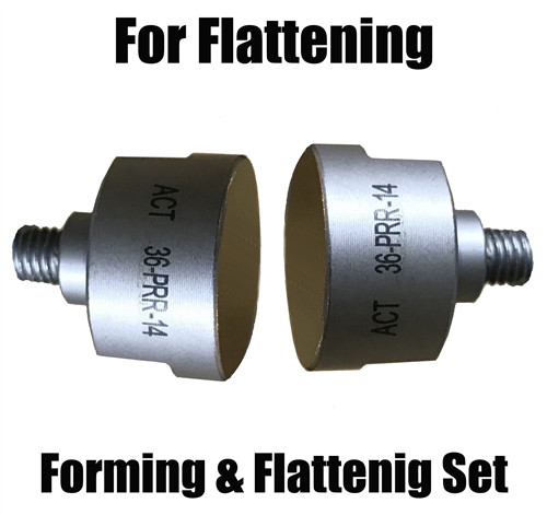 The 36065 kit punch and Die forming kit works with SPR-12, 36061, and pro spot PR-5 (gen 1) self piercing rivet guns. Forming Die is as pictured and works with both the large and small "C" yoke attachments. Contain 18 dies.