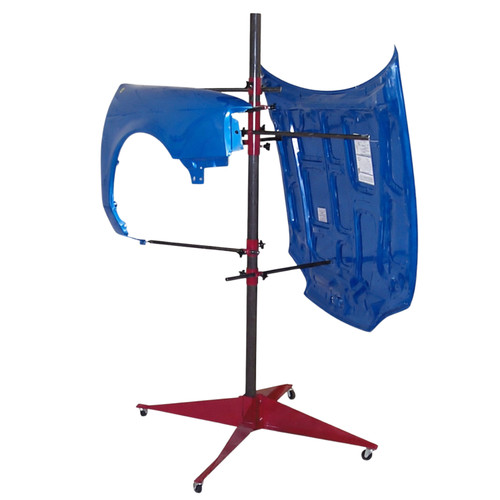 The Steck 35900 Panel Tree is a time-saving adjustable stand for auto body and collision repair shops. It securely holds one or two panels such as doors, fenders, hoods, or trunk lids at once. The center post design with tilting arms and foam padding gives complete access to edges, bottom, and both sides for sanding, masking, prepping, and painting without flipping or extra handling. Panels load quickly and easily, allowing you to paint panels and jambs while working on the car. Built-in casters provide mobility and the stable base keeps everything secure.