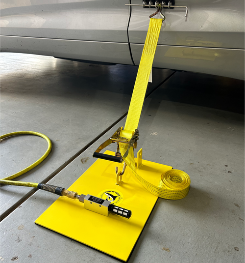The Killer Tools ART23 Vacuum Floor Puller anchors securely to most shop floors with over 1200 lbs of pulling force, enabling fast, precise non-structural sheet metal pulls on steel or aluminum panels in collision repair. Roll into position, connect to compressed air, step on the vacuum plate to engage, and pull without waiting for frame racks or chain pots. Its simple one-pin height adjustment and load roller make setup effortless, ideal for daily use in busy auto body shops.