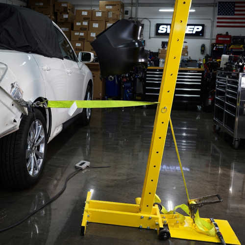 The Killer Tools ART23 Vacuum Floor Puller anchors securely to most shop floors with over 1200 lbs of pulling force, enabling fast, precise non-structural sheet metal pulls on steel or aluminum panels in collision repair. Roll into position, connect to compressed air, step on the vacuum plate to engage, and pull without waiting for frame racks or chain pots. Its simple one-pin height adjustment and load roller make setup effortless, ideal for daily use in busy auto body shops.