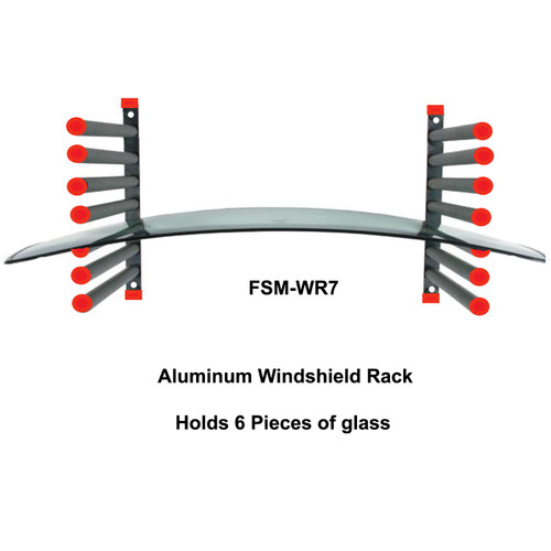 The 6-Slot Windshield Rack (2-Pack) is a lightweight, heavy-duty aluminum storage system that holds up to 6 windshields or glass pieces on seven foam-wrapped support bars with protective end caps and 1-1/4" clearance between bars. Each order includes two beams that can be wall-mounted, bolted to a truck bed, or attached to our mobile dolly base (sold separately). Rated for 400 lbs total load, this versatile rack keeps glass safe and scratch-free in auto glass shops and collision centers.