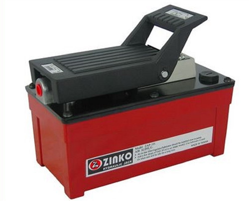The Zinko ZAP-101 100 Cu In Single-Speed Air Hydraulic Pump – durable, portable single-speed air-over-hydraulic pump engineered for lifting, pushing, pulling, and tensioning in industrial, construction, automotive shops, and general maintenance applications. Features a 100 cubic inch steel reservoir for reliable oil supply and rugged durability, rapid "air-thrust" design for quick slack take-up, and high-pressure output up to 10,000 PSI with 77 in³/min no-load flow and 13 in³/min under load. Operates on 40-140 PSI shop air with 360° swivel hose connector for flexible positioning; standard 3/8" NPT ports ensure seamless compatibility with cylinders, rams, and spreaders – no modifications needed.