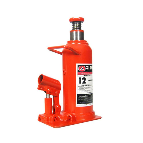 The Zinko ZN-12 12-Ton Standard Bottle Jack – powerful hydraulic bottle jack with forged steel base designed for lifting, supporting, and positioning in automotive, machinery, construction, and industrial applications. Features a 9.44" minimum height, 5.90" ram lift, 3.15" screw extension for up to 18.50" maximum height, and high-strength welded steel construction rated to 10,000 PSI. Unique base forging enhances pressure resistance, while a needle valve ensures controlled lowering – usable in multiple positions with no modifications needed.